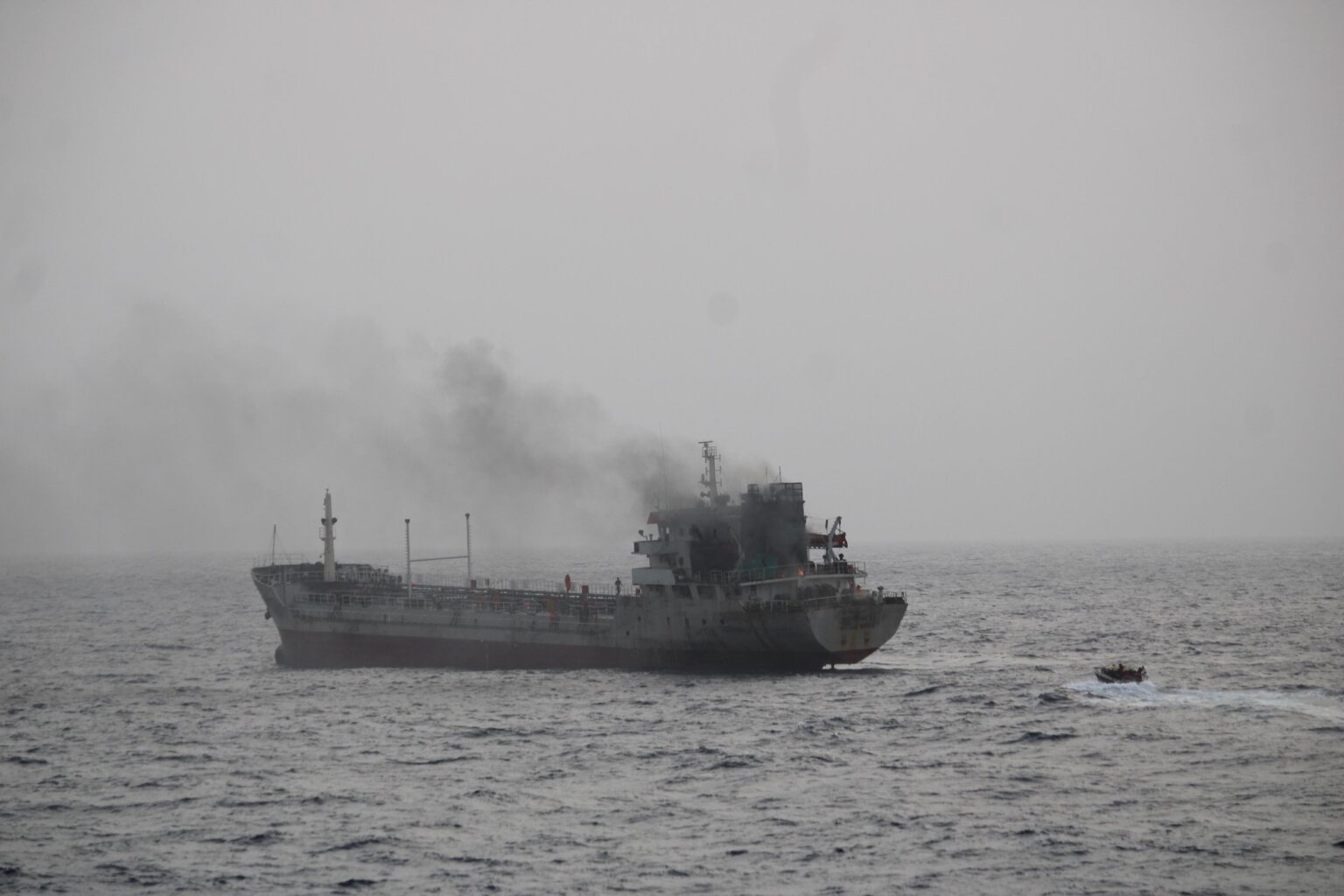 INDIAN NAVY CONTAINS TANKER FIRE IN GULF OF OMAN