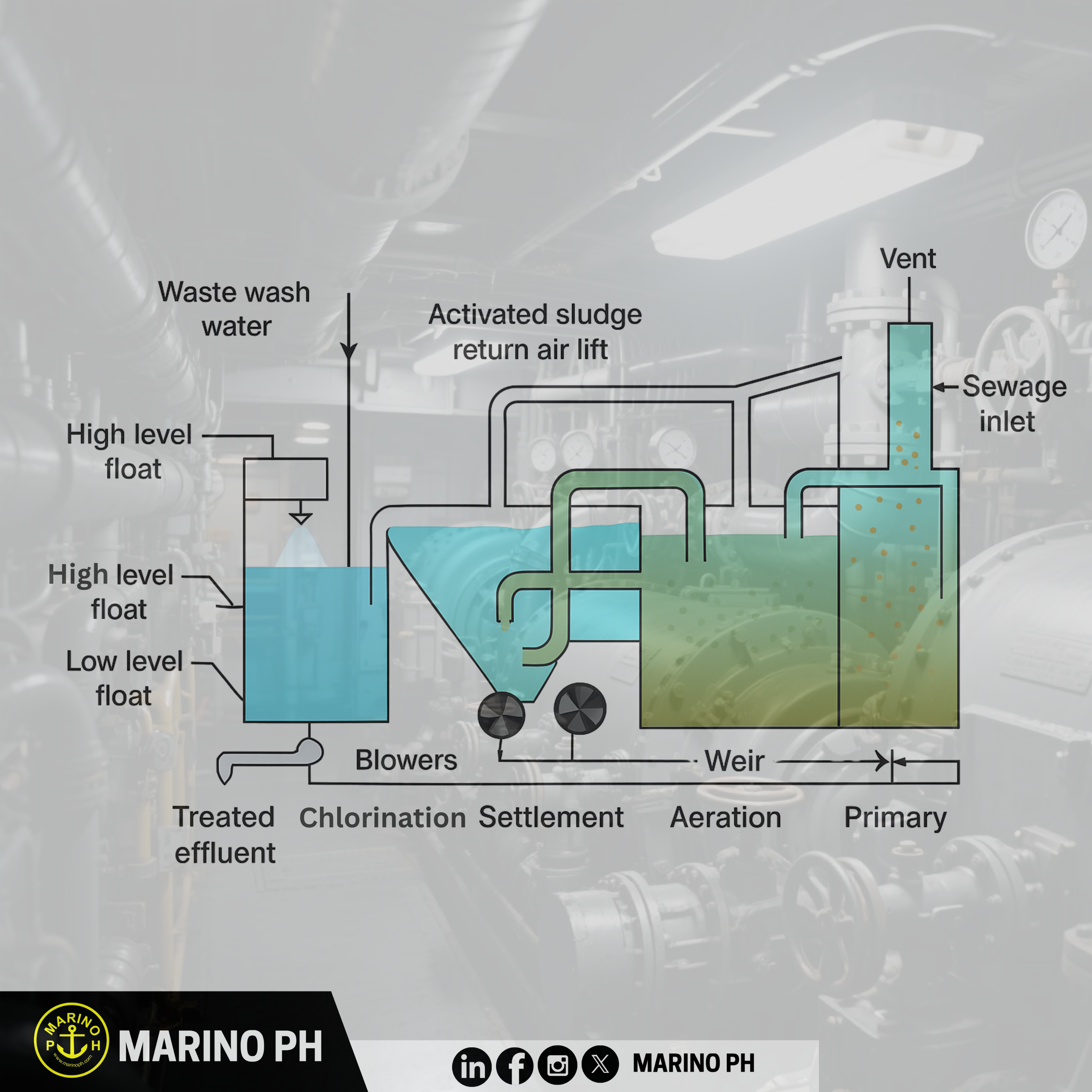 Sewage Treatment Plants Onboard Ships: Keeping Our Oceans Clean Sewage Treatment Plants (STPs) onboard ships play a crucial role in protecting our oceans from pollution. This article explores their history, purpose, importance, and operation highlighting how modern vessels manage wastewater responsibly to meet international standards and support sustainable maritime practices under MARPOL Annex IV. Introduction: Why Ships Need Sewage Treatment Plants Every ship produces sewage from toilets, galleys, and accommodation areas. If discharged untreated, this waste can harm marine life and coastal waters. To prevent pollution, ships are fitted with Sewage Treatment Plants compact systems that treat and disinfect wastewater before release, ensuring compliance with IMO regulations. Passenger ships and vessels over 400 gross tonnage must be equipped with STPs to safeguard human health and marine ecosystems. A Brief History of Sewage Treatment at Sea In the past, ships routinely released raw sewage into the ocean. Growing awareness of pollution’s impact led to international action. The International Maritime Organization (IMO) introduced MARPOL Annex IV in 2003, requiring all ships to properly manage sewage. Over time, basic holding tanks evolved into modern biological treatment units capable of producing clean effluent. Some nations, like the United States, had already established strict sewage control laws, paving the way for global standards. Purpose of a Shipboard Sewage Treatment Plant The main goal of a shipboard STP is to treat and purify wastewater before discharge. It aims to: •Remove solids and organic matter •Eliminate harmful bacteria and pathogens •Reduce odors and contaminants •Meet MARPOL and flag-state requirements Treated effluent must meet specific IMO limits on biochemical oxygen demand (BOD), suspended solids, and coliform bacteria before being safely discharged.