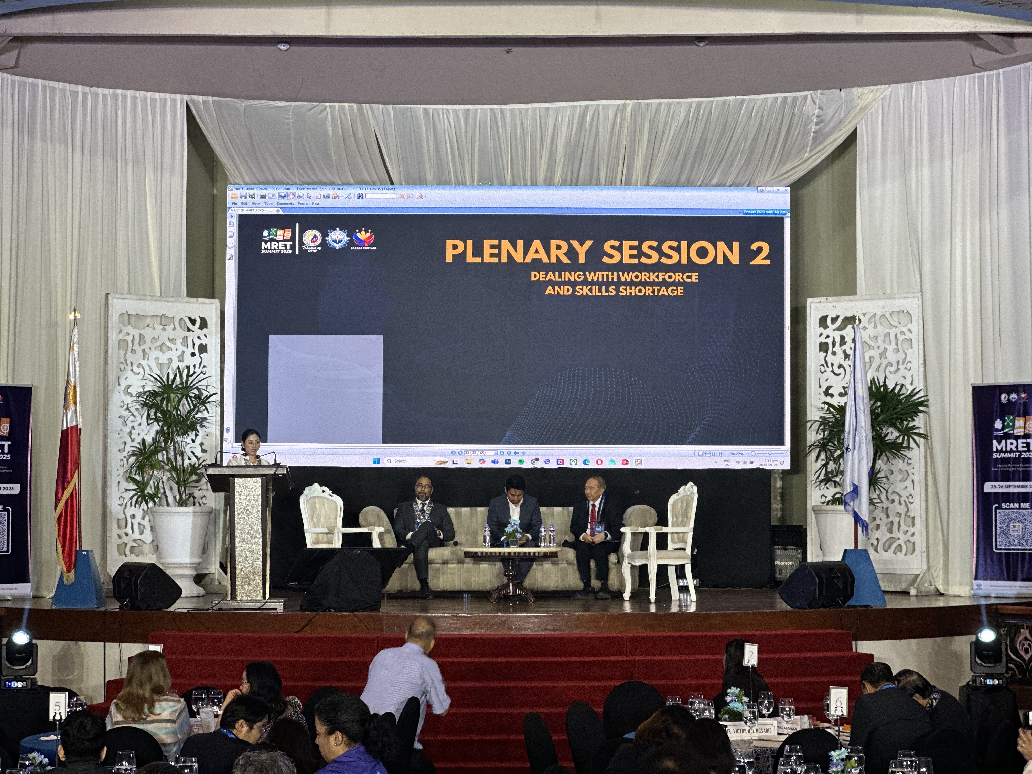 The second plenary session centered on workforce gaps and skills shortages threatening the maritime industry’s sustainability. Mr. Michael Esplago (WIMAS) outlined challenges in onboard training delivery, while Engr. Felix Oca (MAAP) emphasized the urgent need for engineering and technical expertise. A forthcoming presentation by the Marshall Islands will focus on implementing MET standards and compliance. Moderated by Ms. Yashika Torib, the session underscored the need to strengthen industry-academe linkages, improve training programs, and ensure regulatory readiness to meet the international shipping industry’s growing expectations of Filipino seafarers