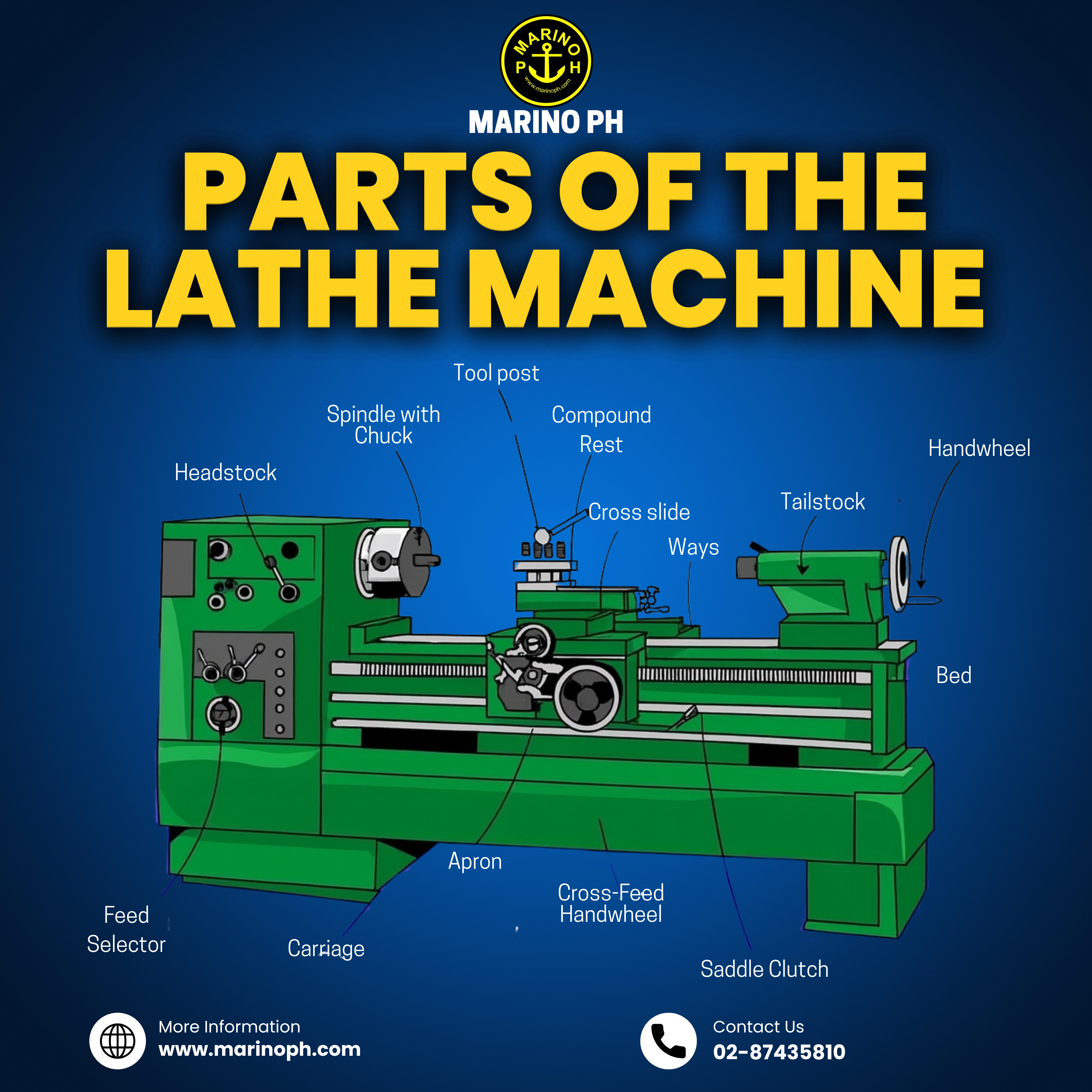 LATHE MACHINE; THE MOTHER OF ALL MACHINES A lathe machine is a powerful tool in both industrial and maritime workshops. By rotating a workpiece against a cutting tool, it enables precise shaping, drilling, and finishing of materials. This makes it vital for manufacturing components such as shafts, propeller parts, and other cylindrical items that require high accuracy. How a Lathe Machine Works At its core, a lathe machine consists of a headstock, tailstock, bed, and carriage. The headstock houses the spindle and speed controls, delivering rotational motion to the workpiece. The tailstock provides support and can hold auxiliary tools like drills or reamers. The bed acts as a rigid base, ensuring that all other components remain aligned. Mounted on the bed, the carriage including the saddle, cross-slide, and tool post movably carries the cutting tool, while the lead screw and feed rod drive the tool’s motion for threading and feeding. Operations You Can Do on a Lathe Lathes are extremely versatile. Here are some of the most common operations: Turning: Reducing the diameter of a workpiece to form cylinders or tapered shapes. Facing: Creating flat surfaces on the ends of the piece. Parting: Cutting off a portion of the workpiece. Boring: Enlarging existing holes or providing a precise internal diameter. Thread Cutting: Cutting internal or external screw threads. Knurling: Forming patterned grips on handles or tool surfaces. Drilling: Using a drill held in the tailstock to bore holes with high accuracy.