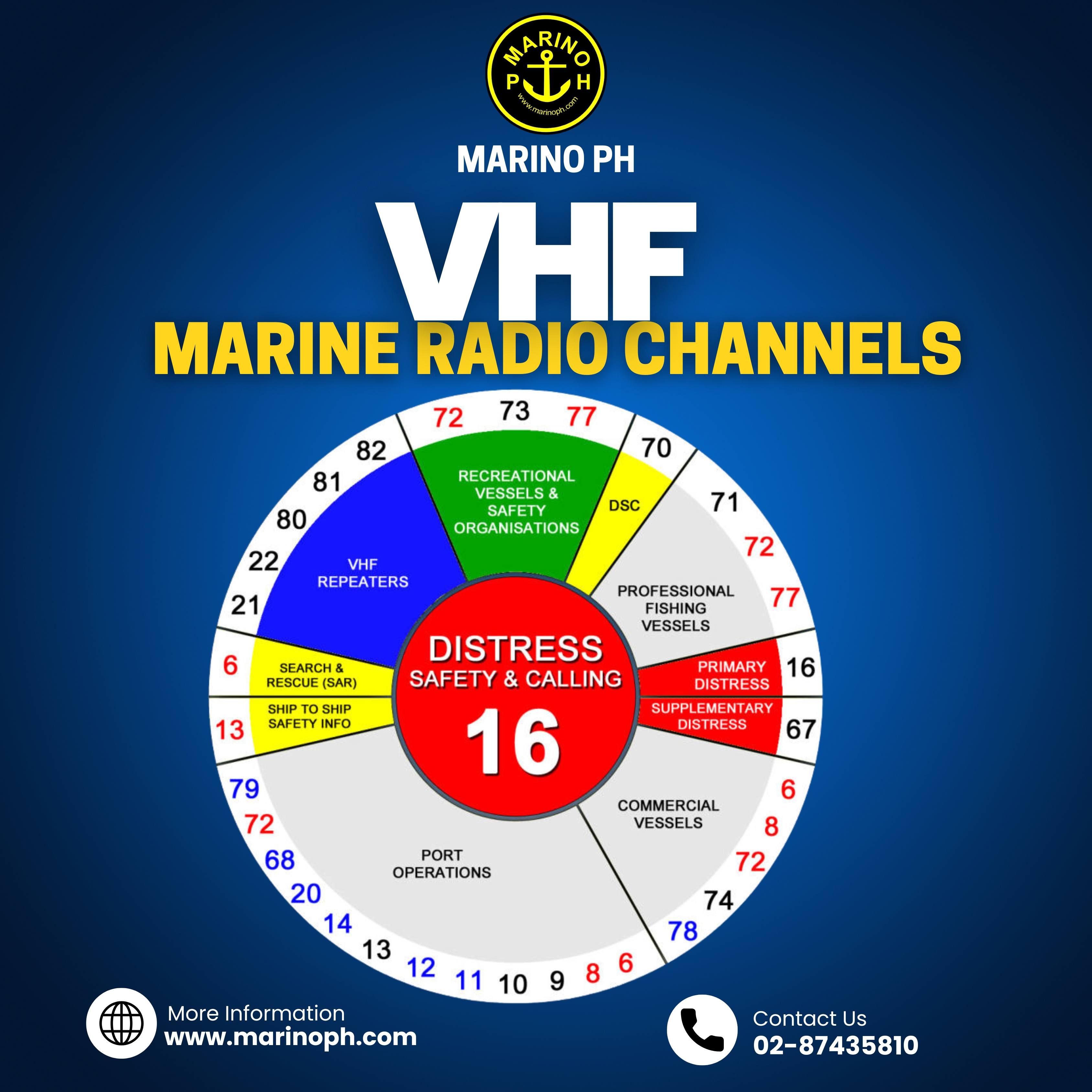 This VHF Marine Radio Channels guide presents a clear and practical overview of how Very High Frequency (VHF) radio channels are organized and used in maritime communication. It is designed to help seafarers, maritime students, and industry professionals quickly understand the correct use of each channel in daily operations and emergency situations. At the center of the guide is Channel 16, the internationally recognized channel for distress, safety, and calling, highlighting its vital role in emergency alerts and initial contact between vessels and shore stations. The diagram groups channels according to their operational purpose, including search and rescue (SAR), ship-to-ship safety information, port operations, commercial vessel communications, professional fishing vessels, recreational vessels, and maritime safety organizations. It also identifies channels dedicated to Digital Selective Calling (DSC) and VHF repeaters, supporting efficient distress alerting and extended communication coverage. Color Coding Guide: • Blue channels – Designated for ship-to-shore communications • Red channels – Used primarily for ship-to-ship communications • Black channels – Suitable for both ship-to-shore and ship-to-ship communications Overall, this guide serves as a reliable reference for proper VHF radio use, reinforcing international maritime communication standards while promoting safety, clarity, and effective coordination at sea.
