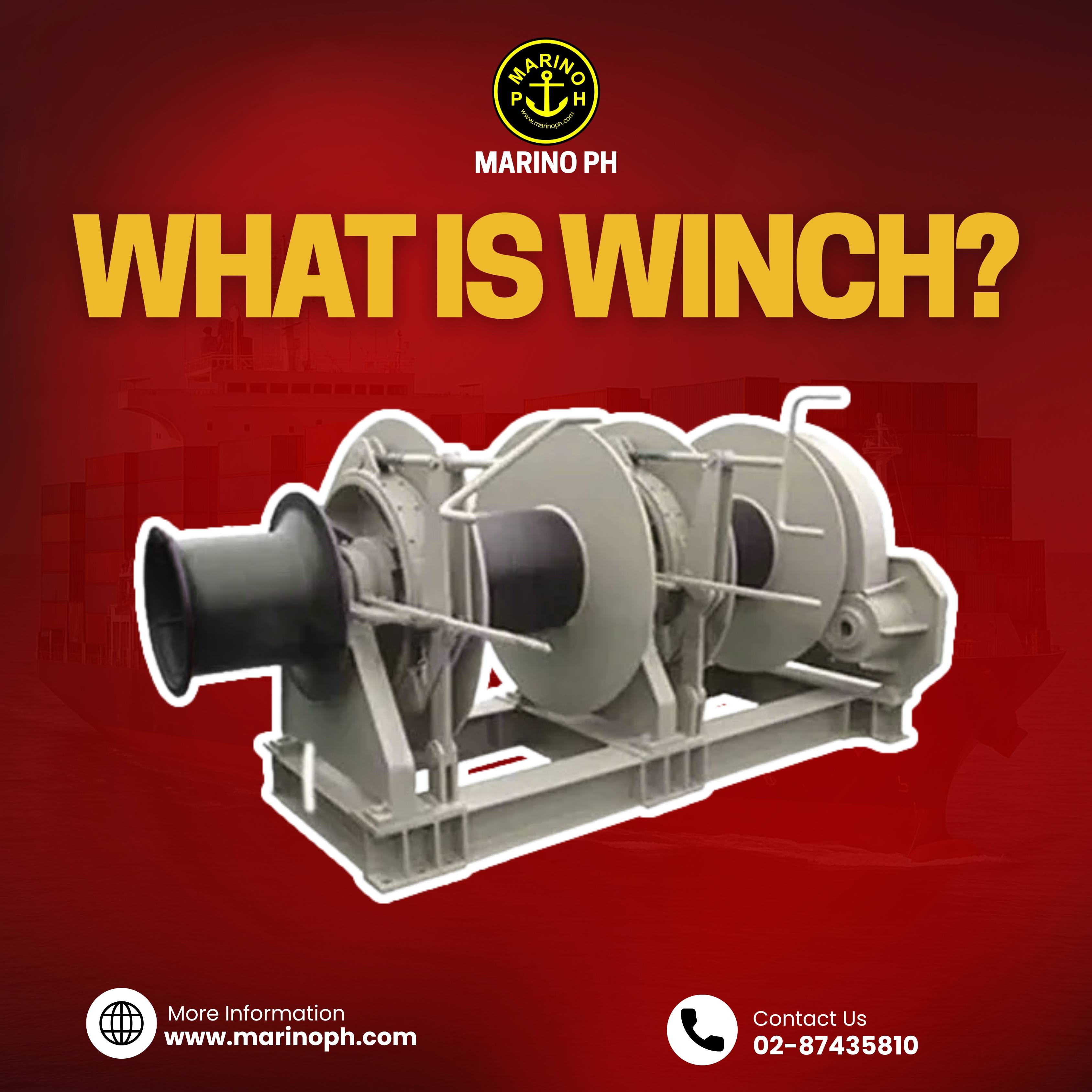 A winch is a mechanical device with a rotating drum used to pull, lift, or control heavy loads using wire rope, cable, or synthetic line. It provides controlled movement of equipment, lines, and cargo on deck. Purpose of a Winch ‣Heave in or slack out mooring lines safely ‣Lift or move heavy objects with controlled tension ‣Assist in towing, anchoring, and cargo operations I‣mprove safety and efficiency during deck tasks