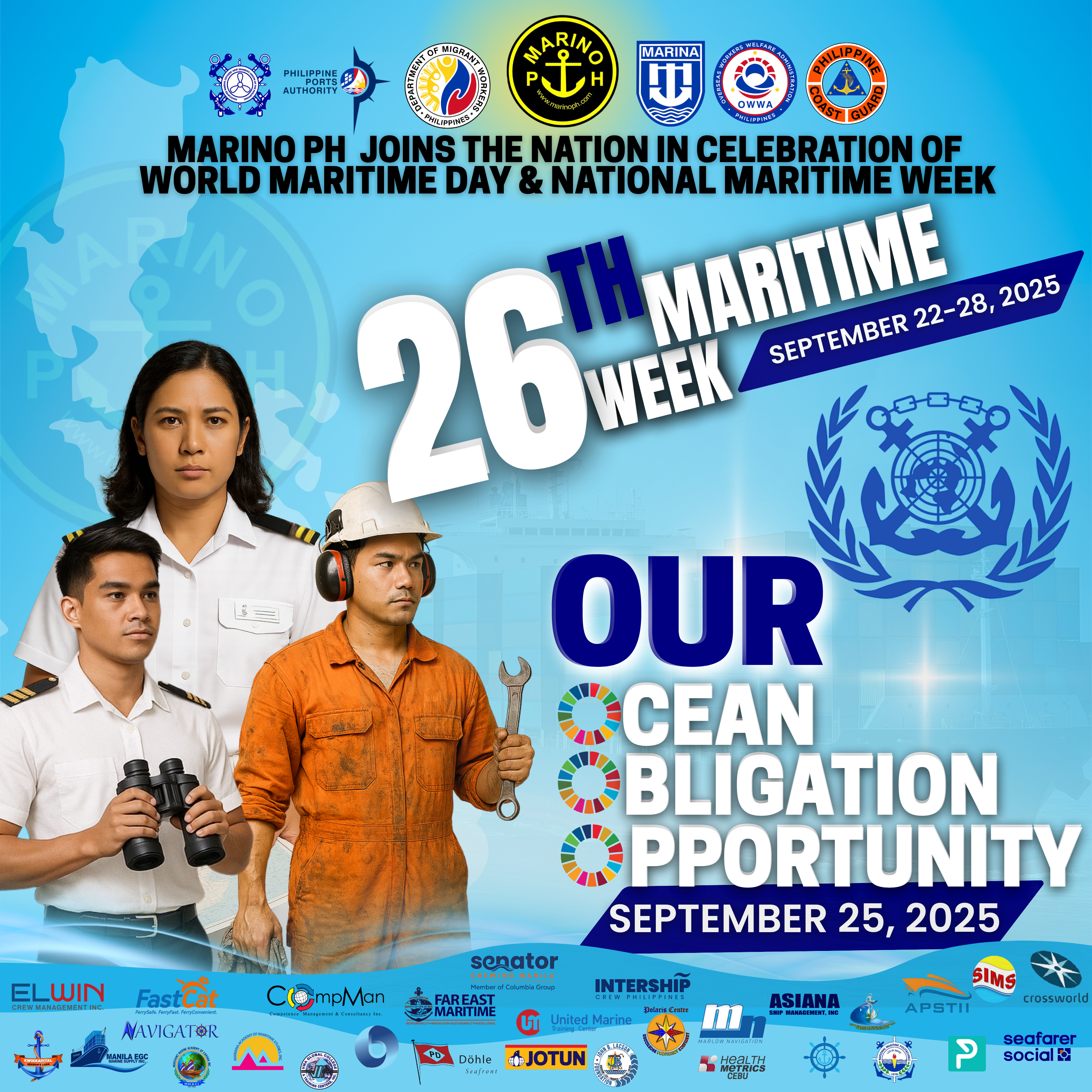 Marino PH proudly joins the Philippine maritime community and the rest of the world in celebrating the 26th National Maritime Week from September 22 to 28, 2025, alongside the global observance of World Maritime Day on September 25, 2025. These events are significant annual milestones that honor the vital contributions of the maritime sector to the nation’s economy, global trade, and sustainable development. With the theme “Our Ocean, Our Obligation, Our Opportunity,” this year’s celebration emphasizes the shared responsibility of all stakeholders in safeguarding the oceans while recognizing the opportunities they provide for growth, livelihood, and innovation. The theme also reflects the International Maritime Organization’s (IMO) vision of ensuring safe, secure, and sustainable shipping, in line with the United Nations Sustainable Development Goals (SDGs). National Maritime Week in the Philippines features a variety of activities organized by the Maritime Industry Authority (MARINA), Philippine Coast Guard (PCG), Department of Migrant Workers (DMW), and other government and private sector partners. These include the traditional maritime parade, forums on safety and sustainability, career guidance fairs for students, and tributes to Filipino seafarers who remain at the heart of global shipping. Meanwhile, World Maritime Day provides a platform for international collaboration, reminding the global community of the importance of protecting the marine environment, addressing climate change, and promoting greener shipping practices. As the largest online maritime community in the Philippines, Marino PH continues to stand firm in its mission to advocate for seafarers’ welfare, promote awareness on maritime issues, and highlight the crucial role of Filipino seafarers in keeping global trade moving. We invite everyone to join us in these meaningful celebrations as we honor our maritime heritage and strengthen our collective commitment to a sustainable future.