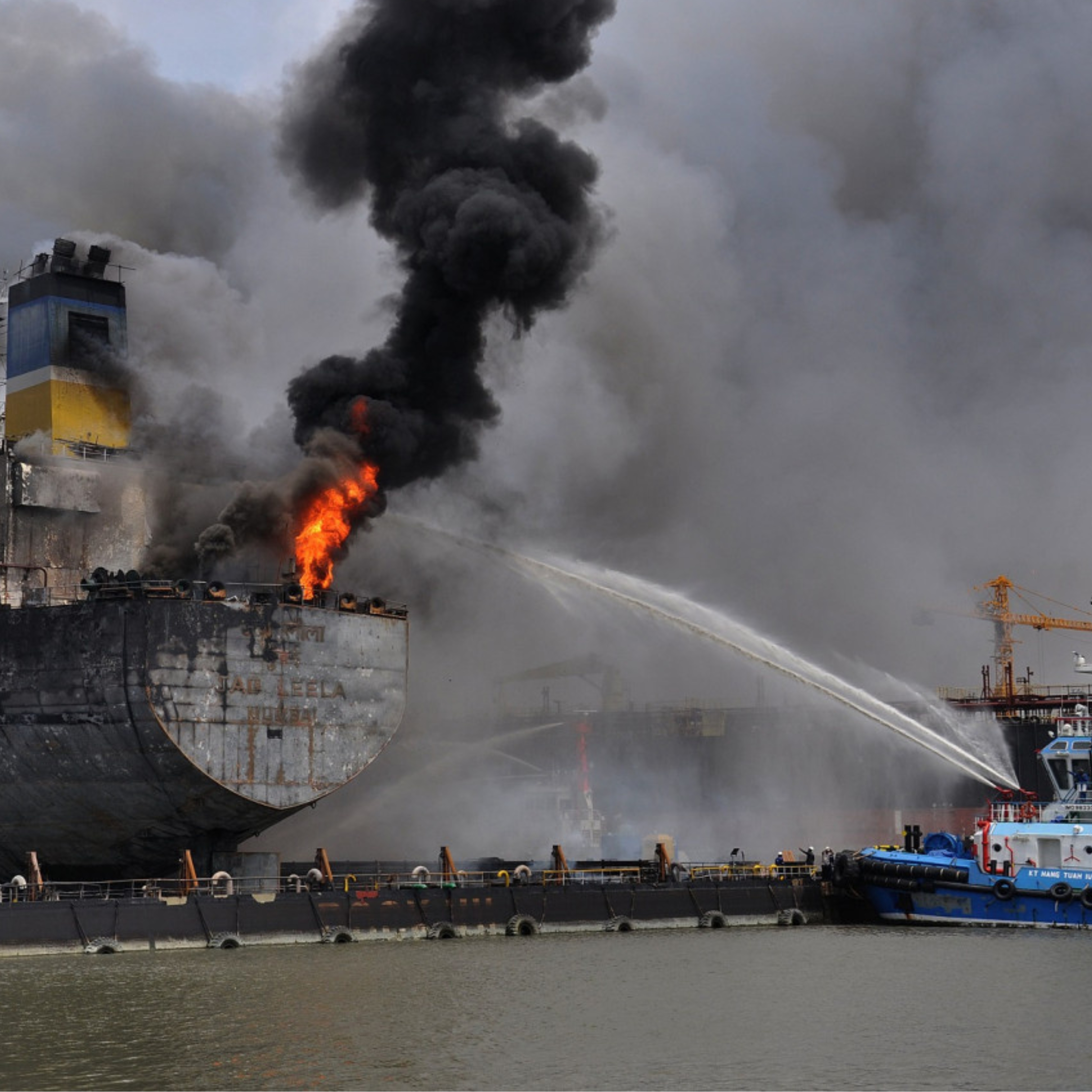 INDIAN NAVY CONTAINS TANKER FIRE IN GULF OF OMAN