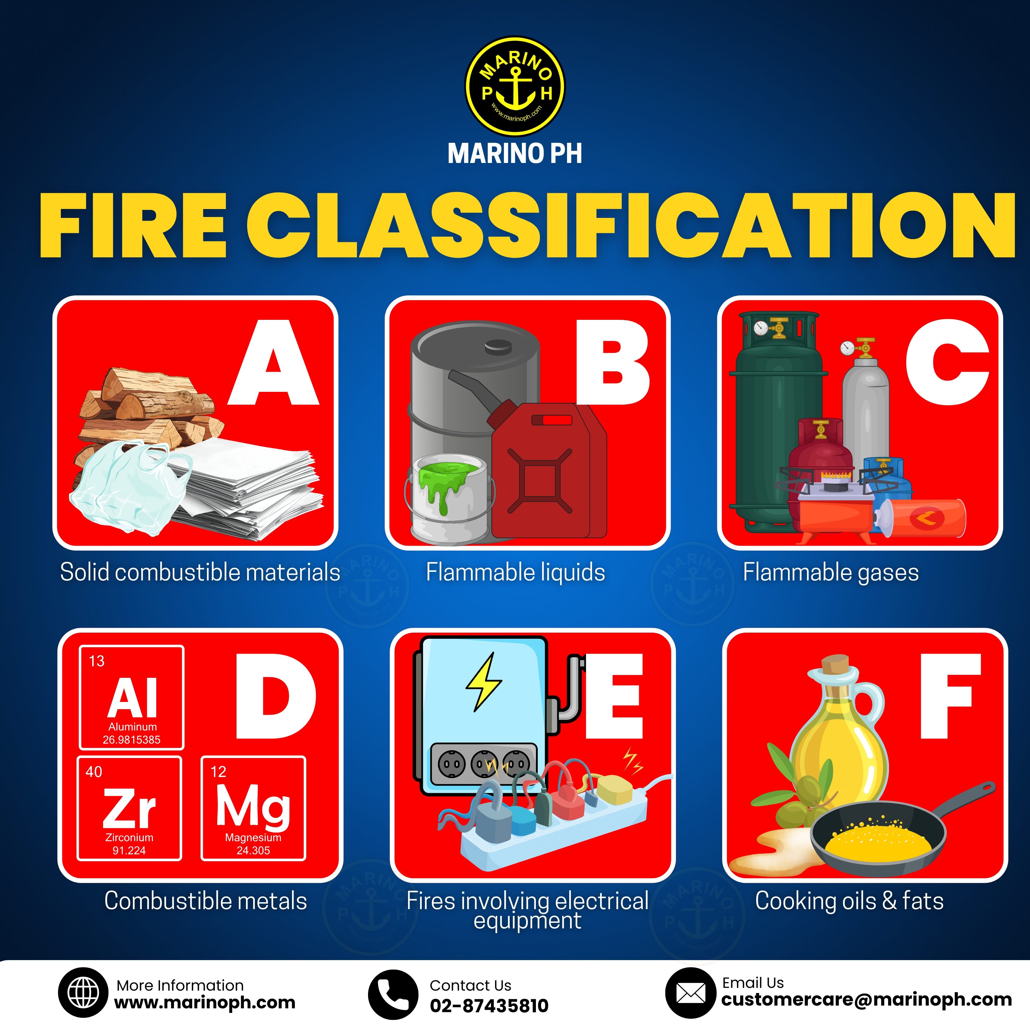 A – Ordinary Combustibles Fires involving solid materials such as wood, paper, cloth, and plastics. B – Flammable Liquids Fires caused by liquids like gasoline, oil, paint, and solvents. C – Flammable Gases Fires involving gases such as LPG, propane, and butane.