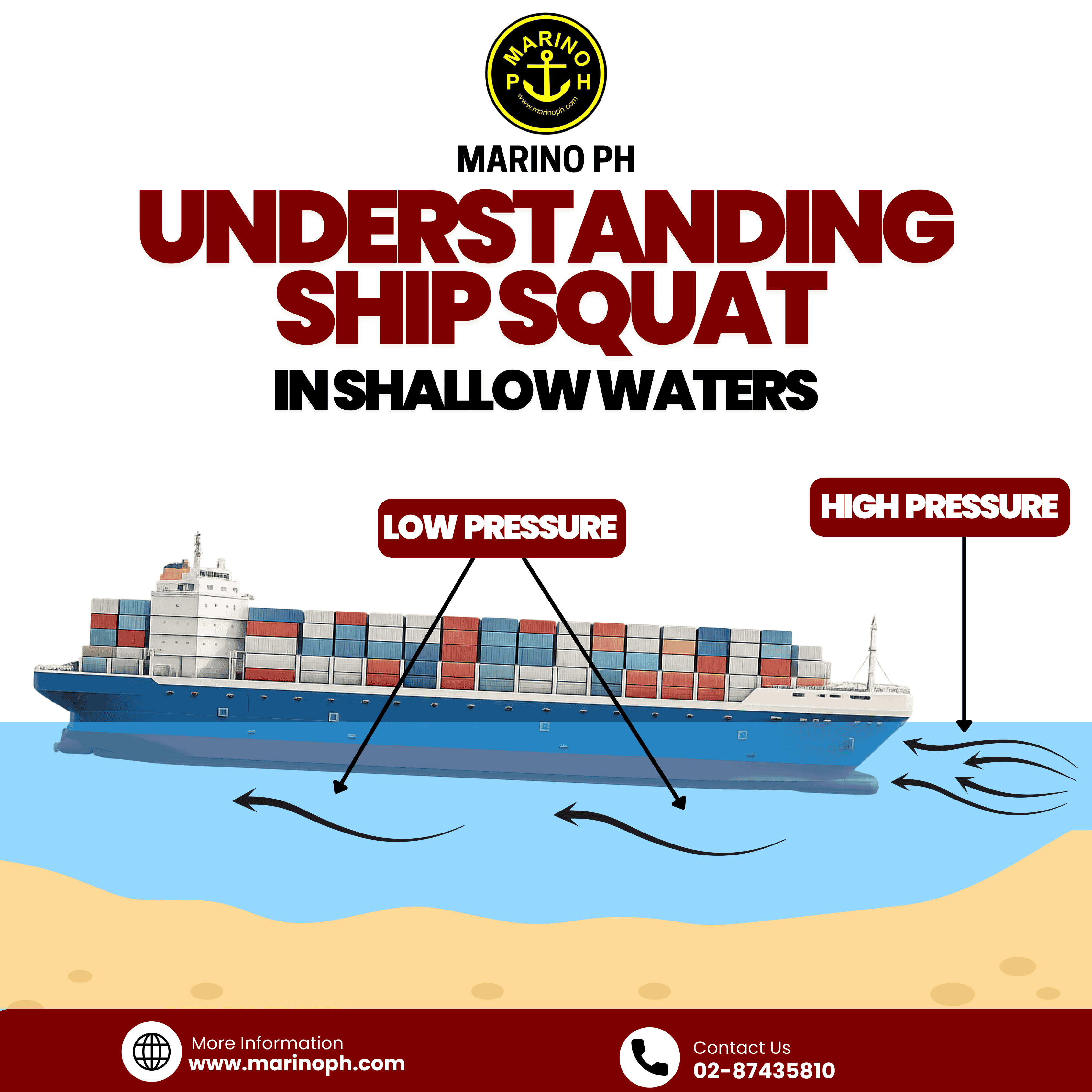 Squat Effect The squat effect is a hydrodynamic phenomenon that occurs when a ship moves through shallow or restricted waters, causing the vessel to sink deeper into the water than its normal draft. When a ship is underway, water flows around and beneath the hull. In shallow water, the space between the seabed and the ship’s bottom becomes limited. Because of this restricted space, the water flowing under the hull speeds up. According to fluid principles, when water velocity increases, pressure decreases.