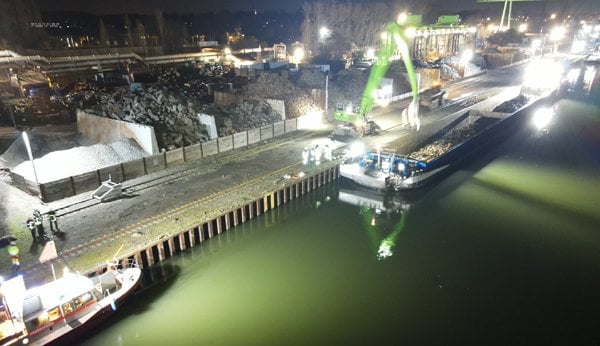 An inland cargo vessel sustained significant structural damage after colliding with a sheet pile wall near the Ellinghauser Straße bridge on the Dortmund–Ems Canal, according to maritime authorities and local emergency responders.
