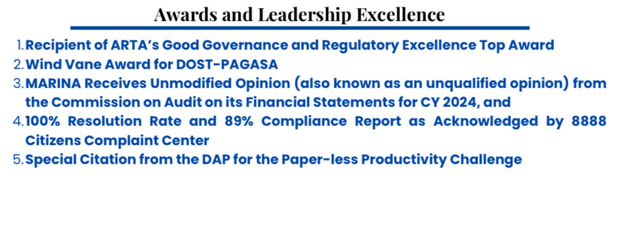 These recognitions collectively reflect MARINA’s sustained focus on leadership excellence, good governance, and continuous improvement—strengthening its role in advancing the Philippine maritime industry and delivering efficient, transparent services to the public.